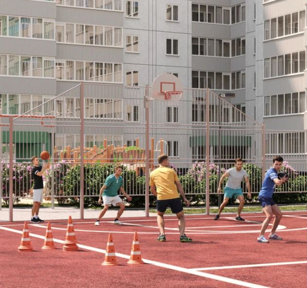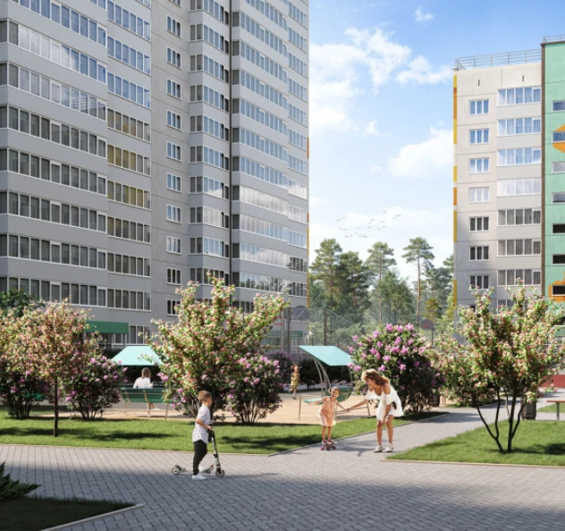 Просторные дворы с затейливыми и при этом безопасными малыми игровыми формами для детей разных возрастов. Оборудованные под ключ футбольные и баскетбольные площадки с возможностью заливки льдом в зимний период. Грамотная инфраструктурная планировка — детские сады, школы, магазины, аптеки, остановки — всё в шаговой доступности.