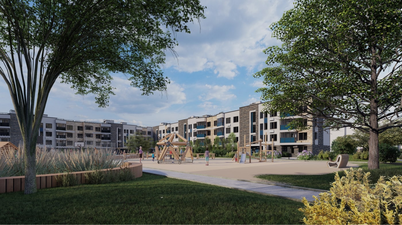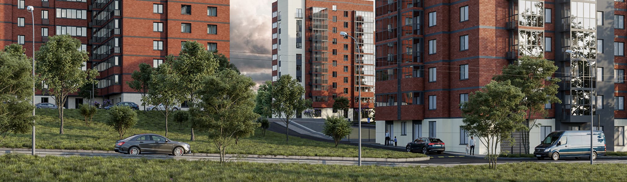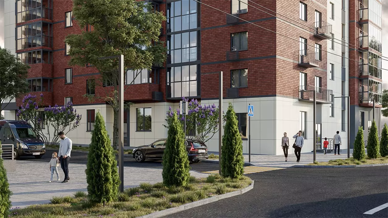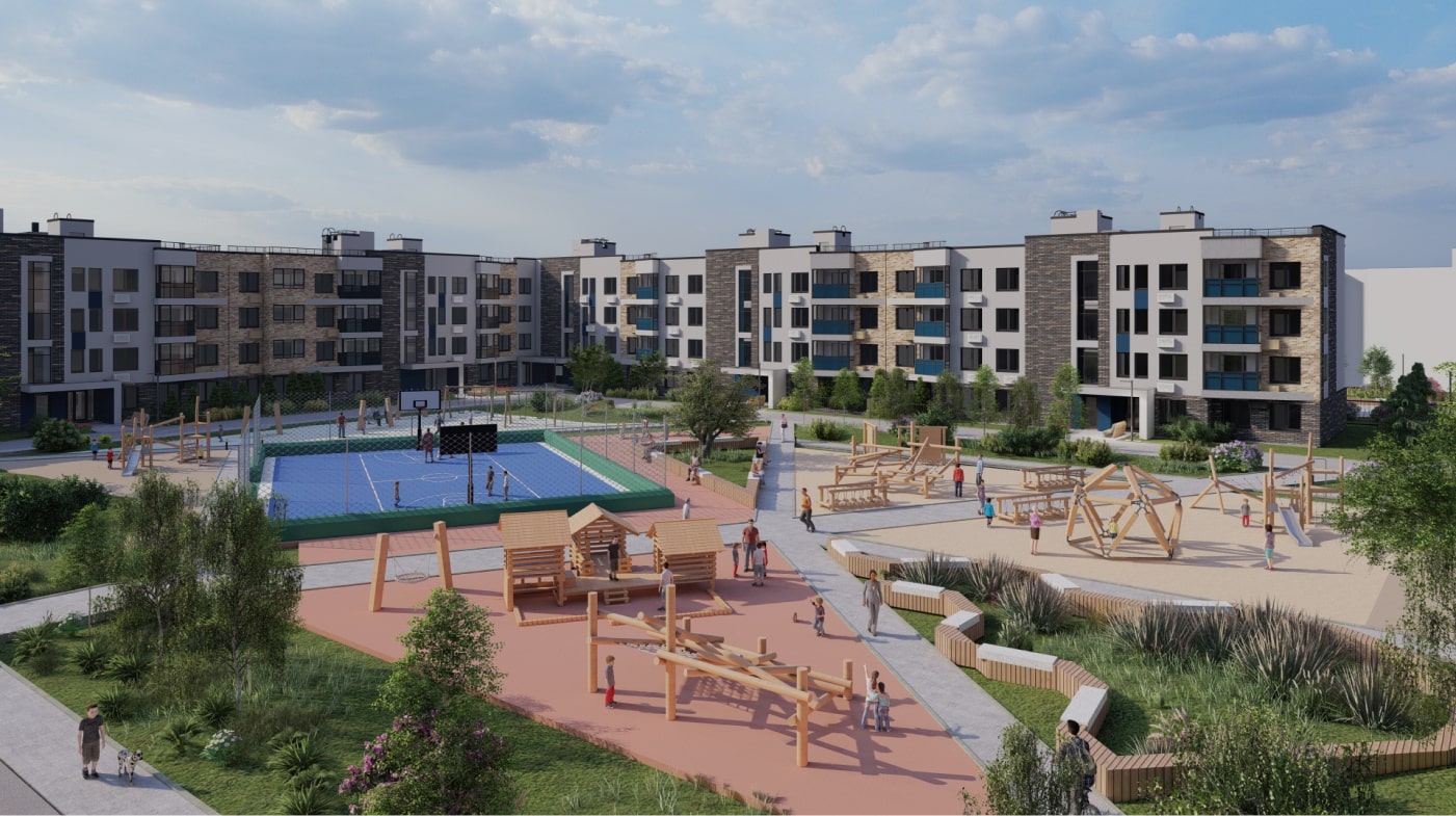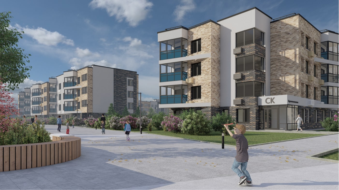 • Большая придомовая территория с концепцией Речного берега