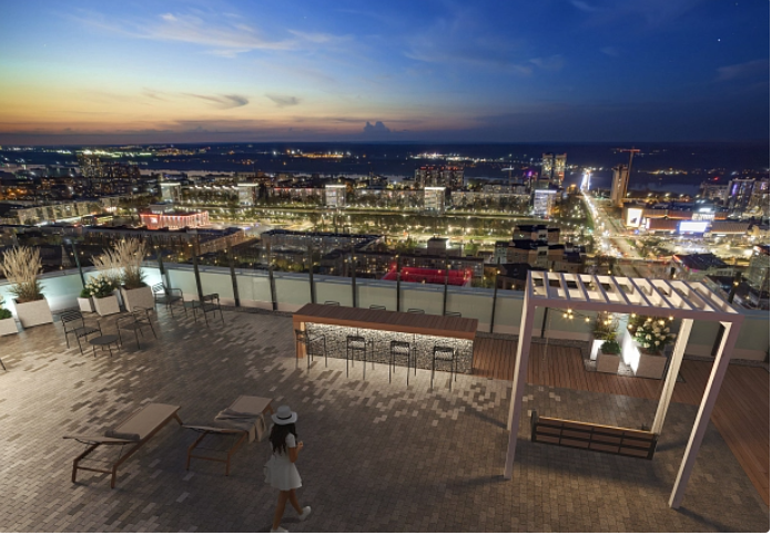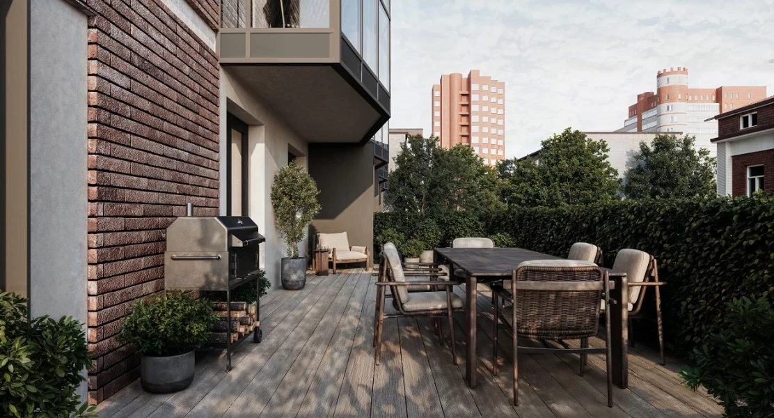 Дом, оформленный в стиле бизнес-класса, предлагает 30 квартир на 6 этажах, а также коммерческие помещения и кладовые. Для автомобилей предусмотрен подземный паркинг.