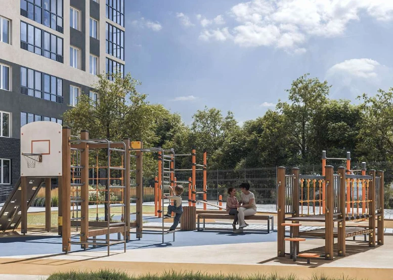 Оборудована современными тренажерами и игровыми зонами для детей и взрослых. Здесь вы найдете баскетбольное кольцо, турники и канаты, что позволяет жителям активно проводить время на свежем воздухе. Площадка оснащена безопасным покрытием, которое снижает риск травм при занятиях спортом.