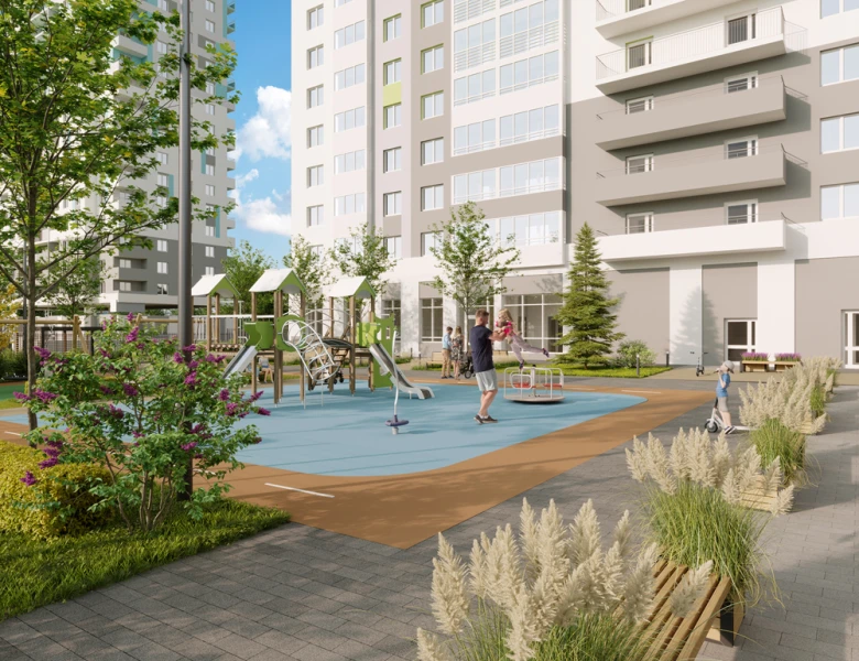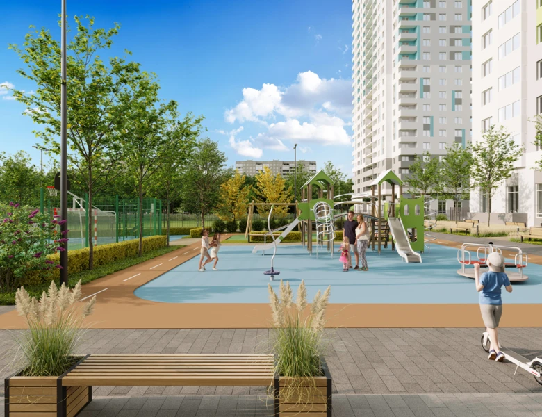 В шаговой доступности находится все самое необходимое – магазины, рынок, почта. Школы и садики находятся в 3 минутах ходьбы от ЖК, что удобно как для родителей, так и их детей. Также рядом находится поликлиника, до неё можно дойти максимум за 10 минут. А прямо напротив ЖК, через дорогу, находится красивый сквер, где можно найти интересные развлечения для всех членов семьи.