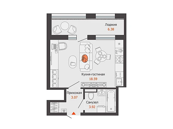 Купить 1к квартиру 29 м² в ЖК Камаполис