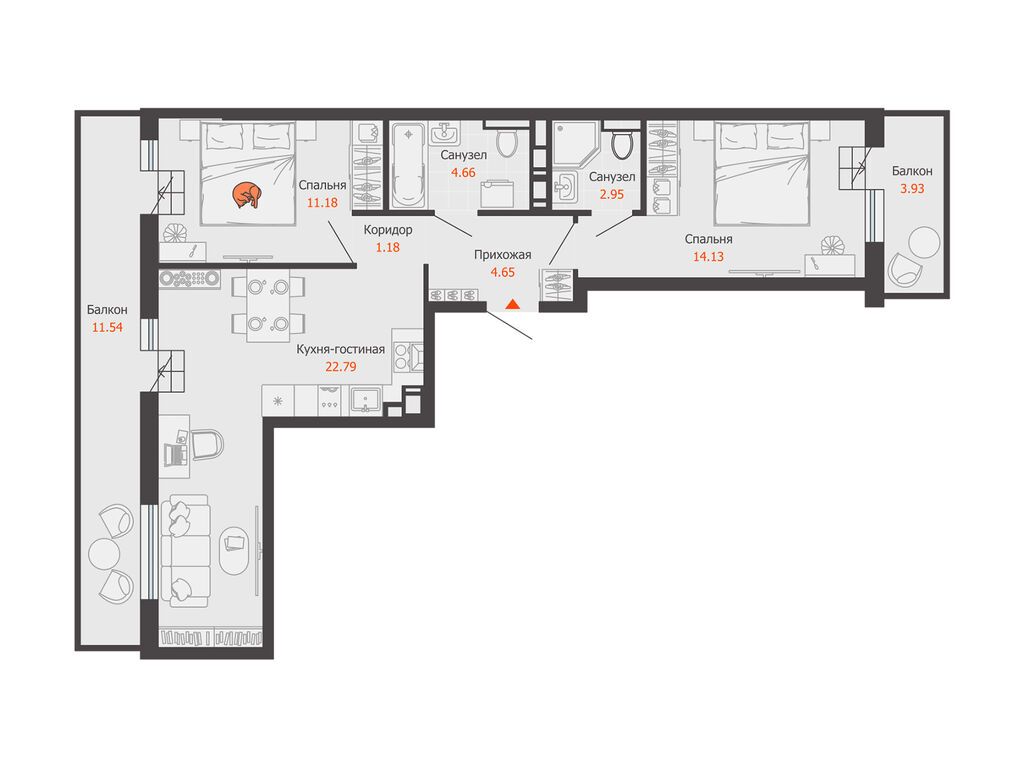 Купить 2к квартиру 66 м² в ЖК Камаполис